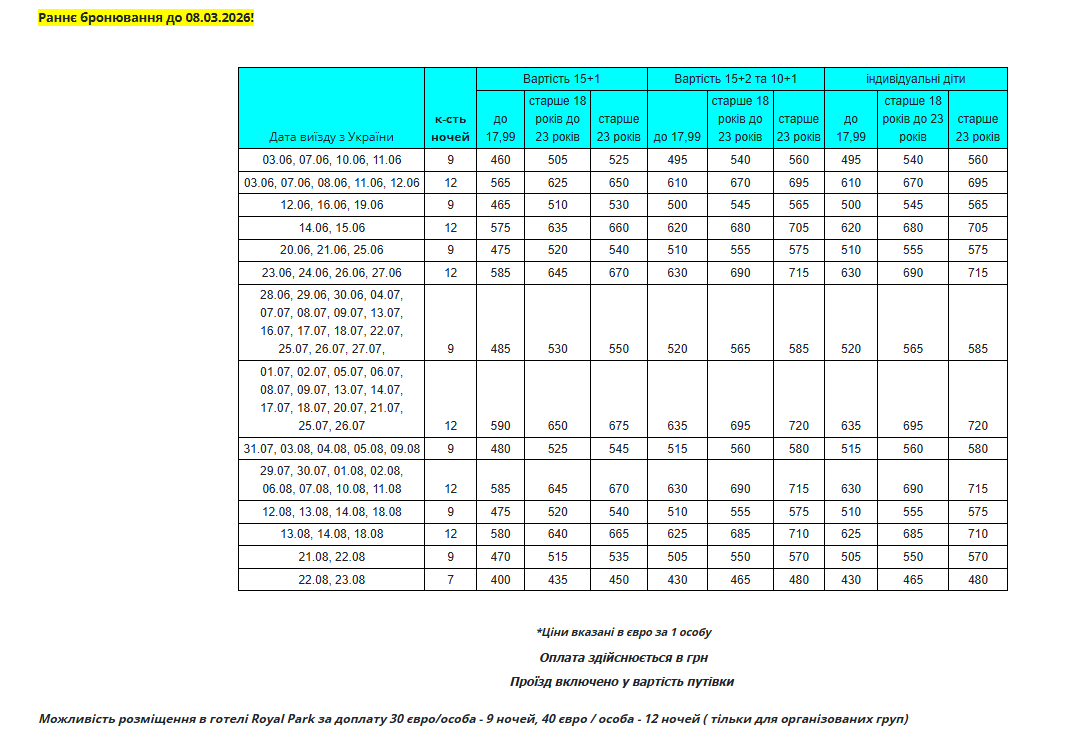 Стоимость тура